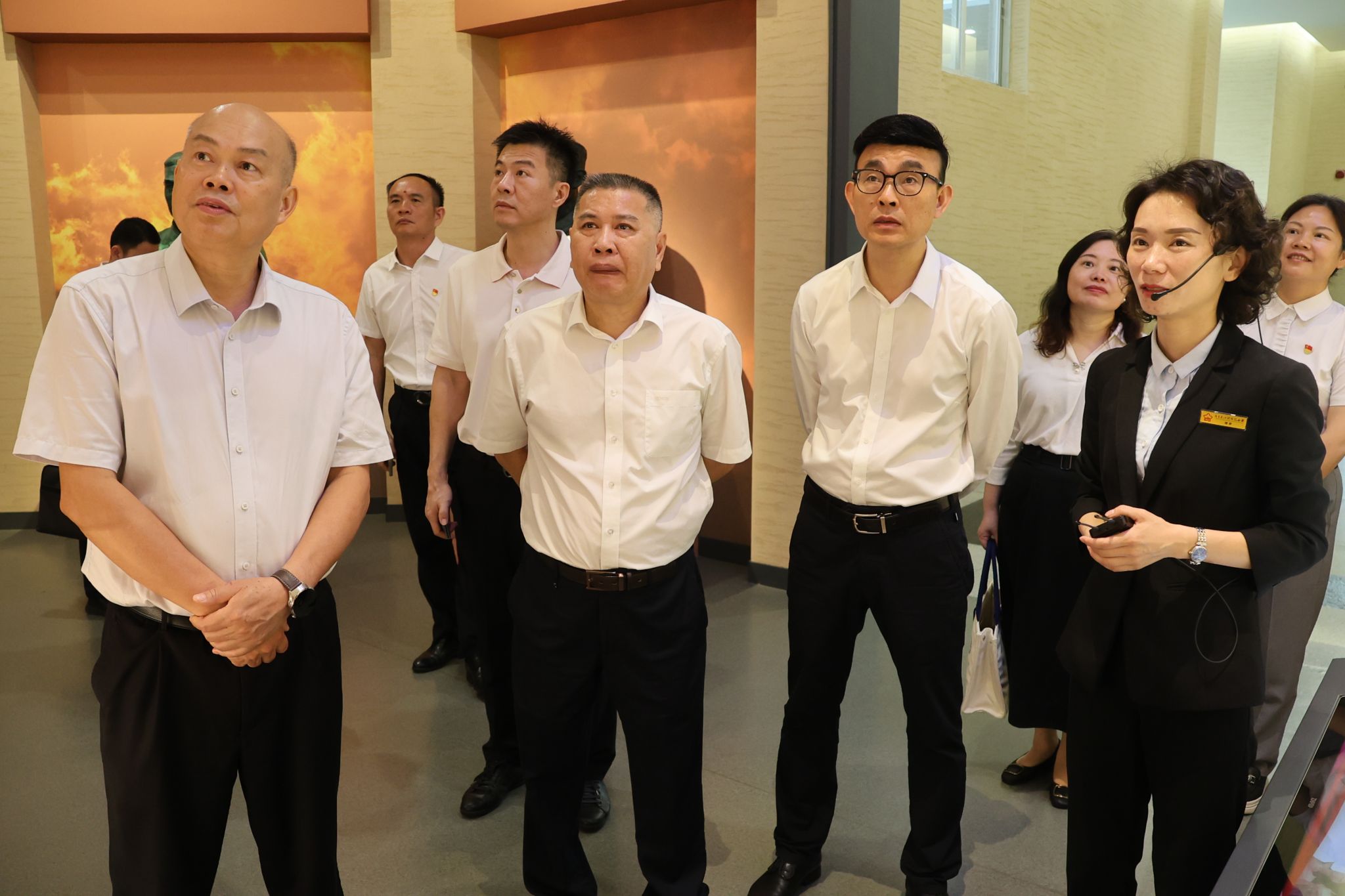 在东莞市大岭山镇大王岭村,中心组成员参观了大岭山抗日根据地旧址和东江纵队纪念馆展厅。一件件革命文物、一张张纪实照片,无一不在讲述着中国共产党革命先驱们的英勇事迹,展现着报国为民、百折不挠的东纵精神。大家认真听取讲解,不时驻足浏览展出的历史老照片、文献资料和革命文物,细致询问有关史实细节。更加深刻领悟东江纵队坚持敌后抗战、保卫家国,艰苦卓绝的革命斗争历程,更加深切缅怀和致敬为民族独立和人民解放作出贡献的革命先烈和仁人志士。